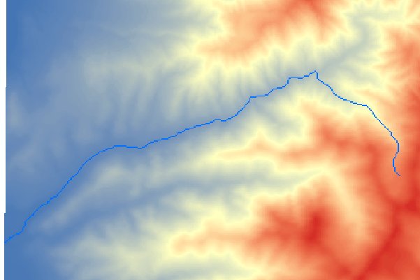 the specified point over the terrain to the Outlet. A Flow Direction D8 raster has to be selected in the Combo box in order to